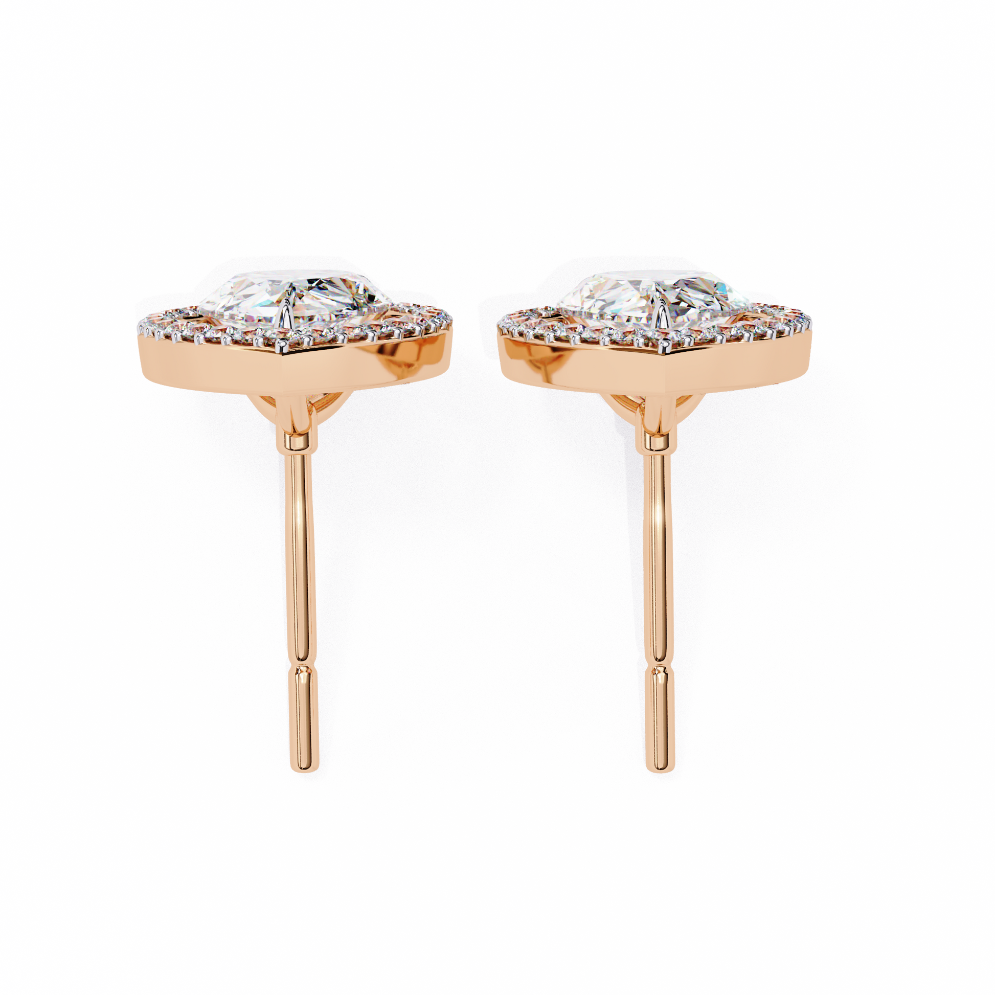The prominent pear-cut centre stone is elegantly framed by a shimmering halo of 27 accent diamonds (weighing 0.1 carats), secured by shared white rhodium prongs. These beautiful earrings are secured with the classic and reliable push-disc backing, ensuring a comfortable and secure fit for both daily wear and special occasions.