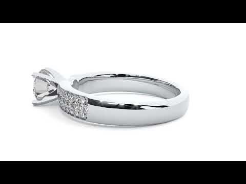 The Celestial Grandeur Diamond Ring is a wide, multi-row band style that radiates opulence from every angle. At its core sits a striking 0.81-carat round-cut lab-grown diamond, prominently secured by a classic four-prong peg head setting. The ring’s shoulders are a marvel of craftsmanship, featuring 50 pavé-set diamonds (25 on each side) arranged in a sophisticated (8-9-8) sequence.