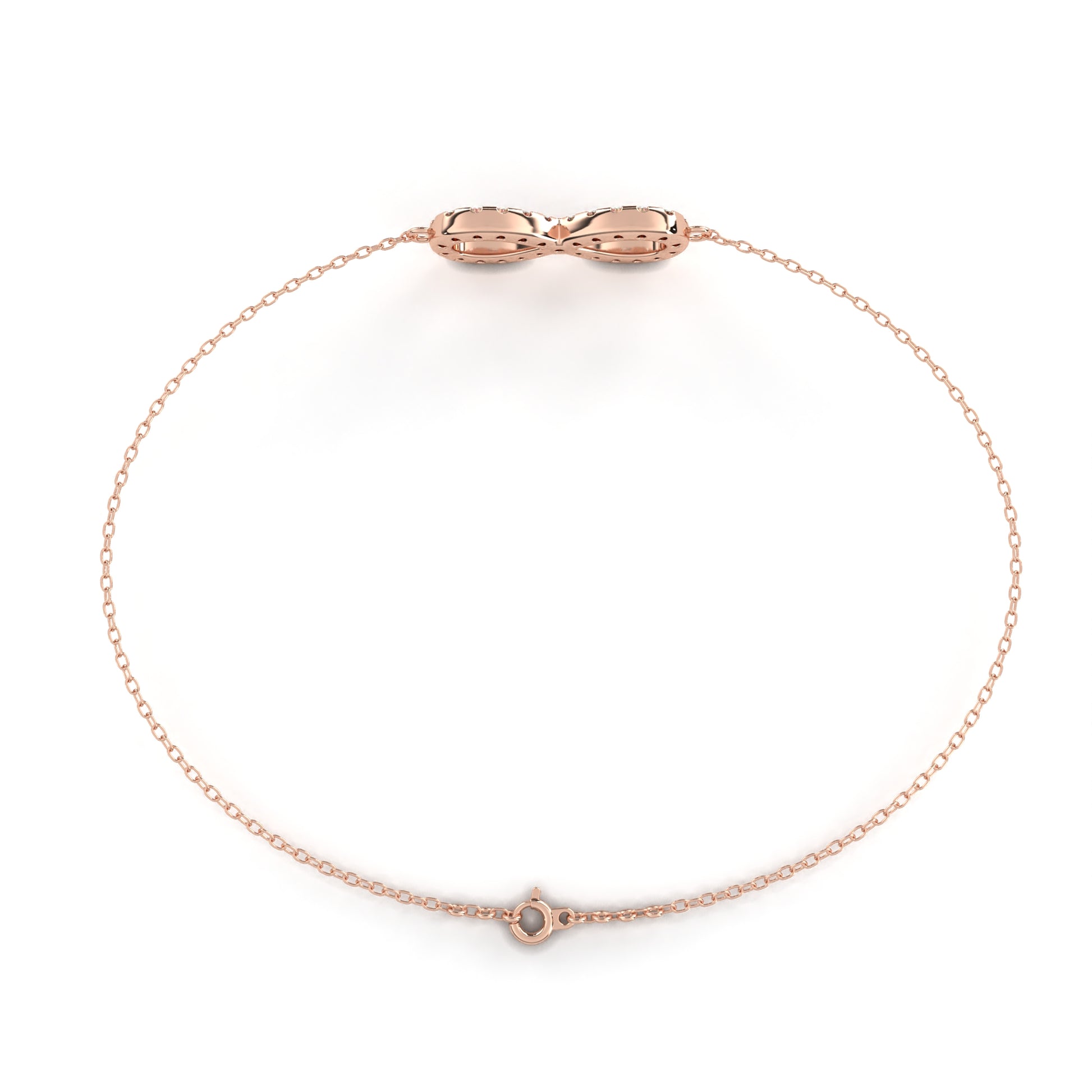 The Eternal Round Diamond bracelet features 25 brilliant round-cut lab-grown diamonds with a total weight of 0.39 carats. Measuring 6 inches in length, each diamond is nestled within a gold infinity structure and meticulously secured by fishtail prongs that mirror natural symmetry.