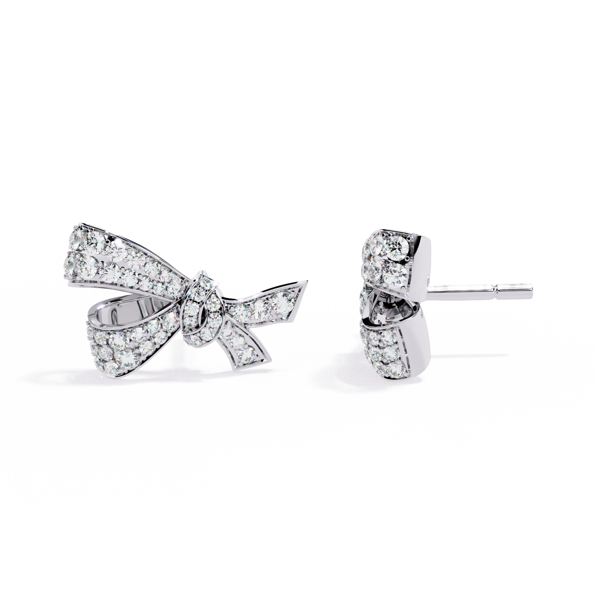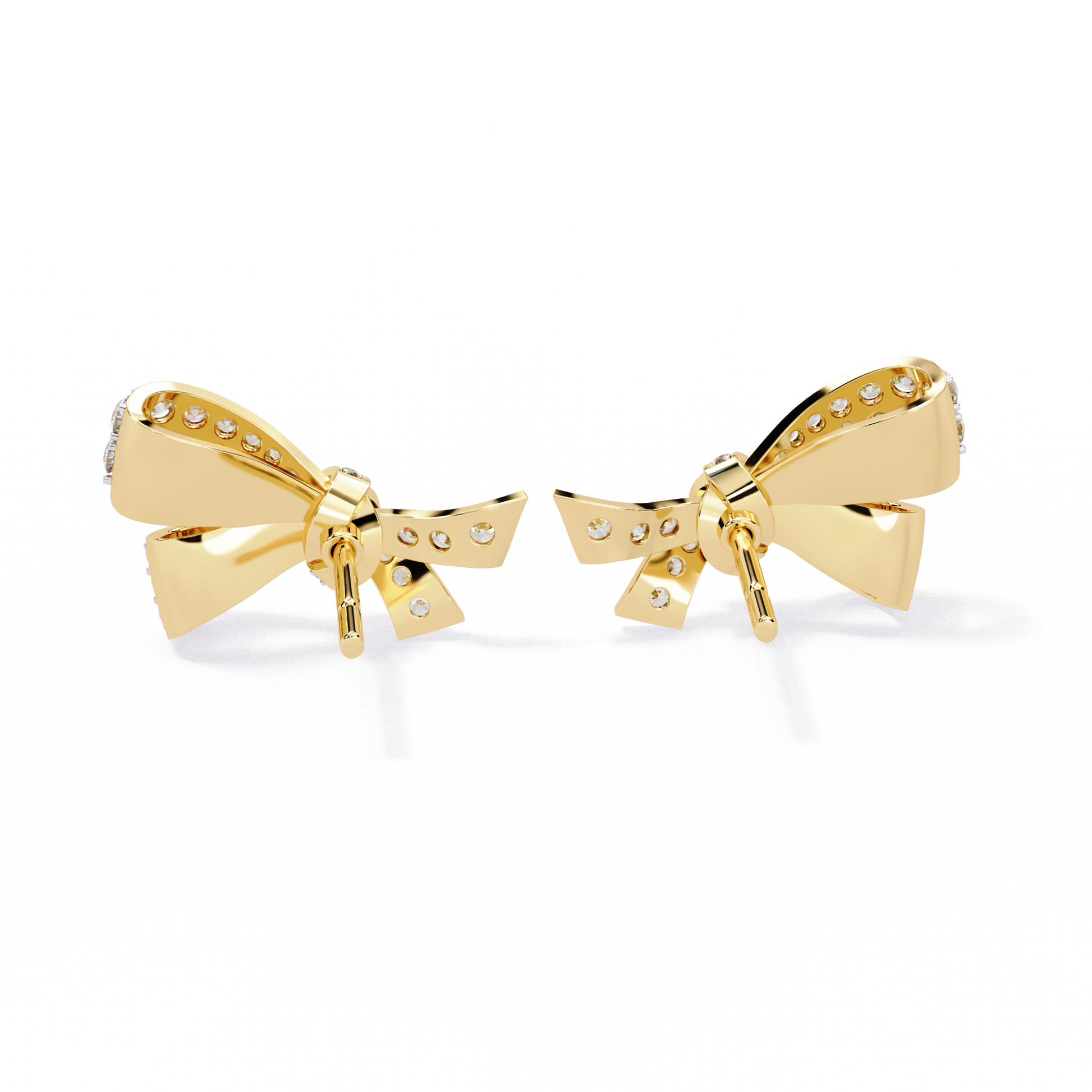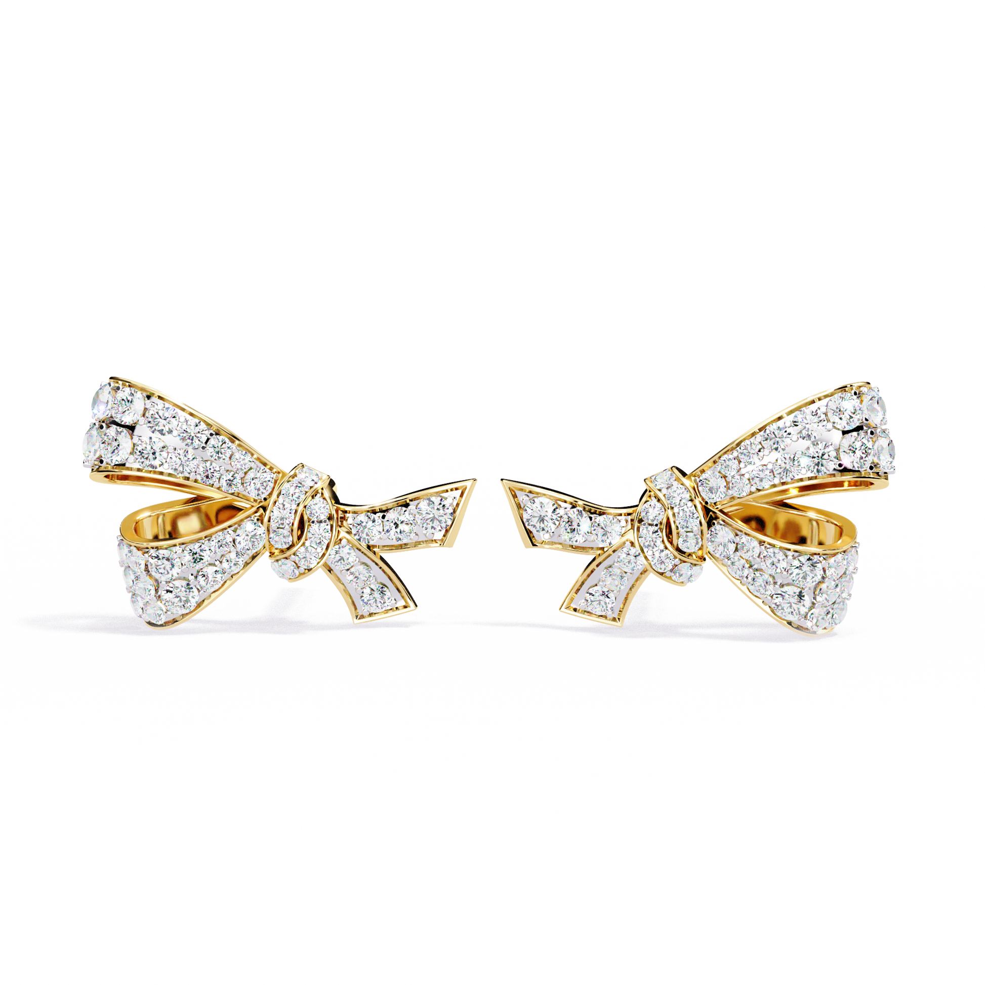 The Stellar Diamond Earrings features 82 lab-grown diamonds weighing 0.96 carats. Each diamond is expertly set in white rhodium-plated prongs. The gold frame bow motif creates a sophisticated silhouette that transitions seamlessly from day to evening wear.