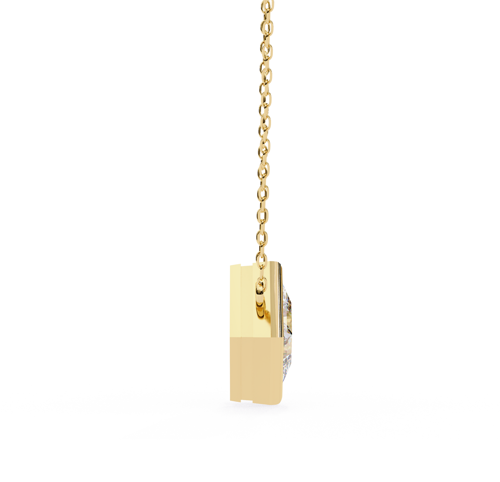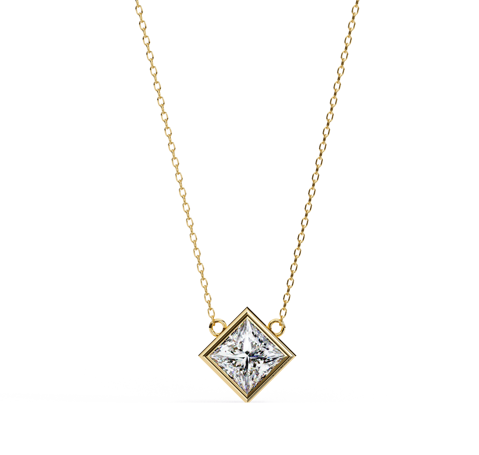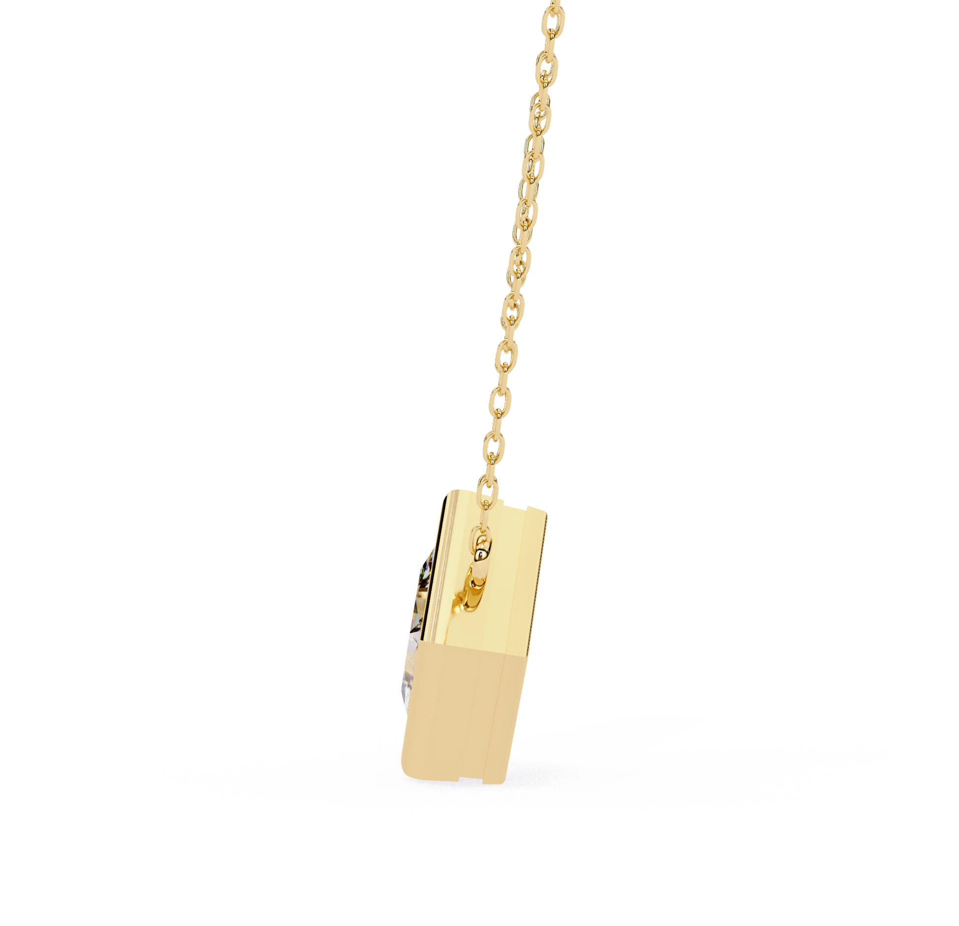 This elegantly crafted pendant features a 2 ct lab-grown diamond, set in a sleek gold frame. A stunning combination of timeless sophistication and modern charm, it offers both brilliance and elegance. The diamond’s captivating sparkle is beautifully enhanced by the refined gold setting, making it a perfect statement piece for any occasion. This pendant effortlessly blends classic beauty with contemporary style, adding a touch of luxury to any jewelry collection.