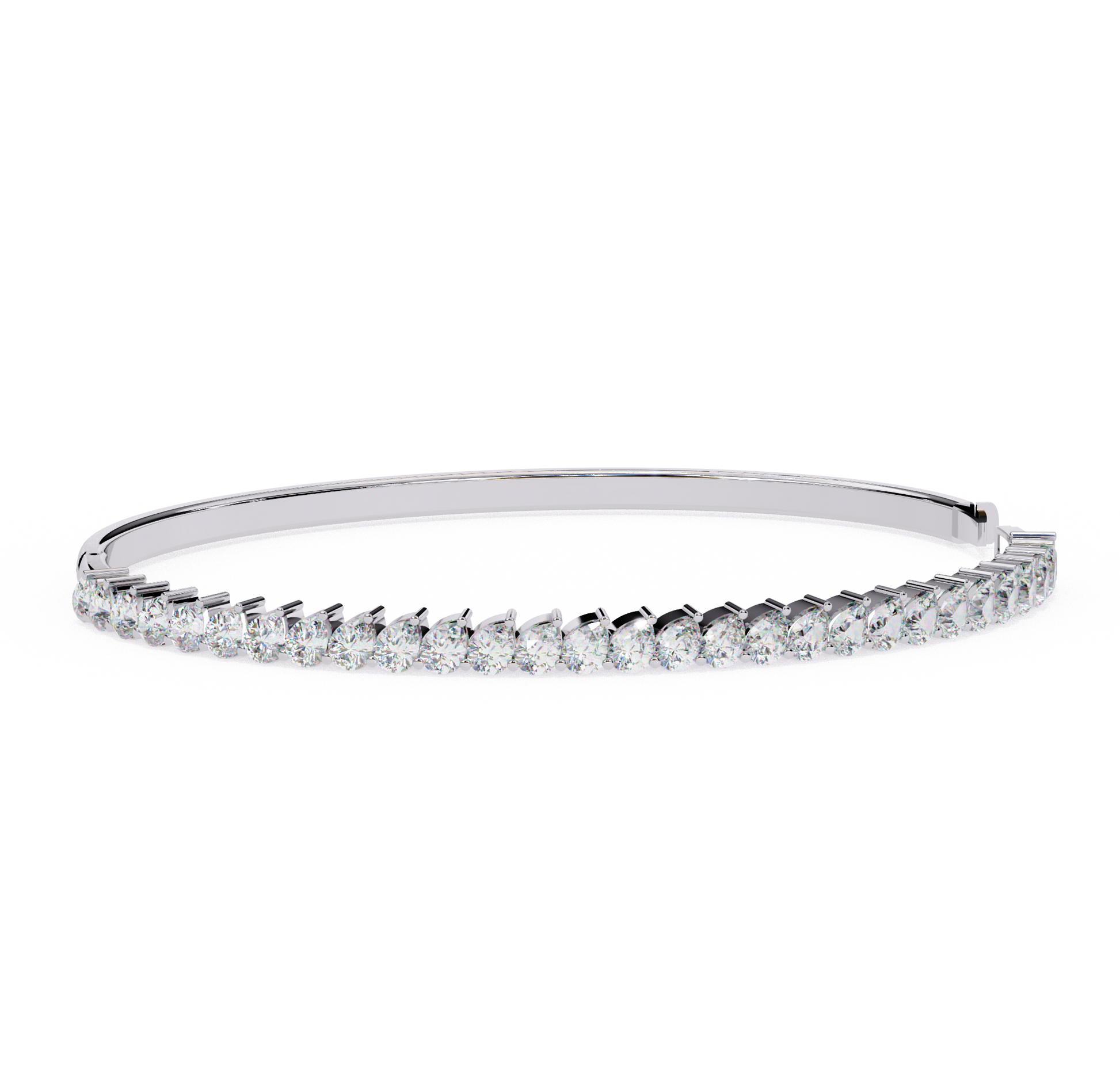 Each of the 29 diamonds is meticulously held by two white rhodium prongs, which blend seamlessly with the stones. The half-cuff design offers the structured look of a rigid bangle with the flexible comfort of a luxury bracelet, secured by a specialised catch clasp for a sleek, integrated finish. This half-cuff tennis bracelet is crafted for both security and style.
