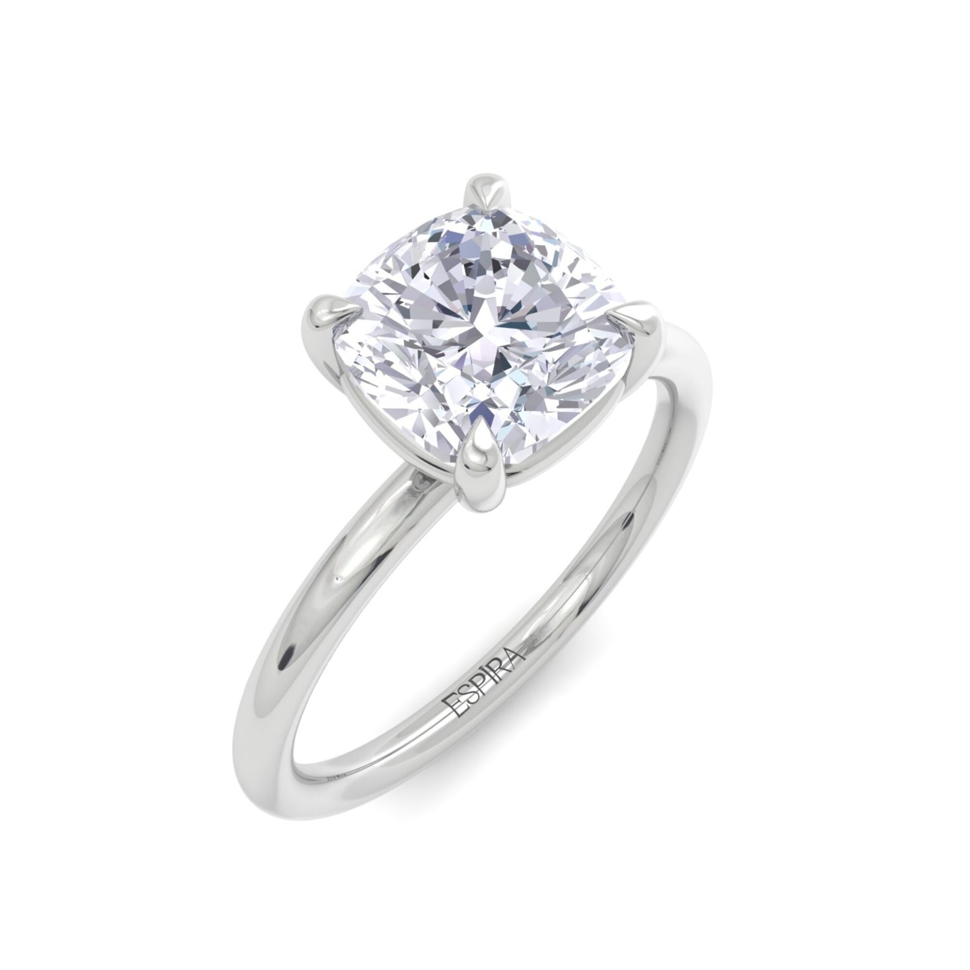 The Liberty 2 Carat Cushion Diamond Ring exemplifies enduring elegance with its remarkable 2 Carat Cushion-cut lab-grown diamond, set in a classic four-claw-prong solitaire design. The carefully crafted step-cut facets create a captivating interplay of light and shadow, blending modern appeal with timeless style.
