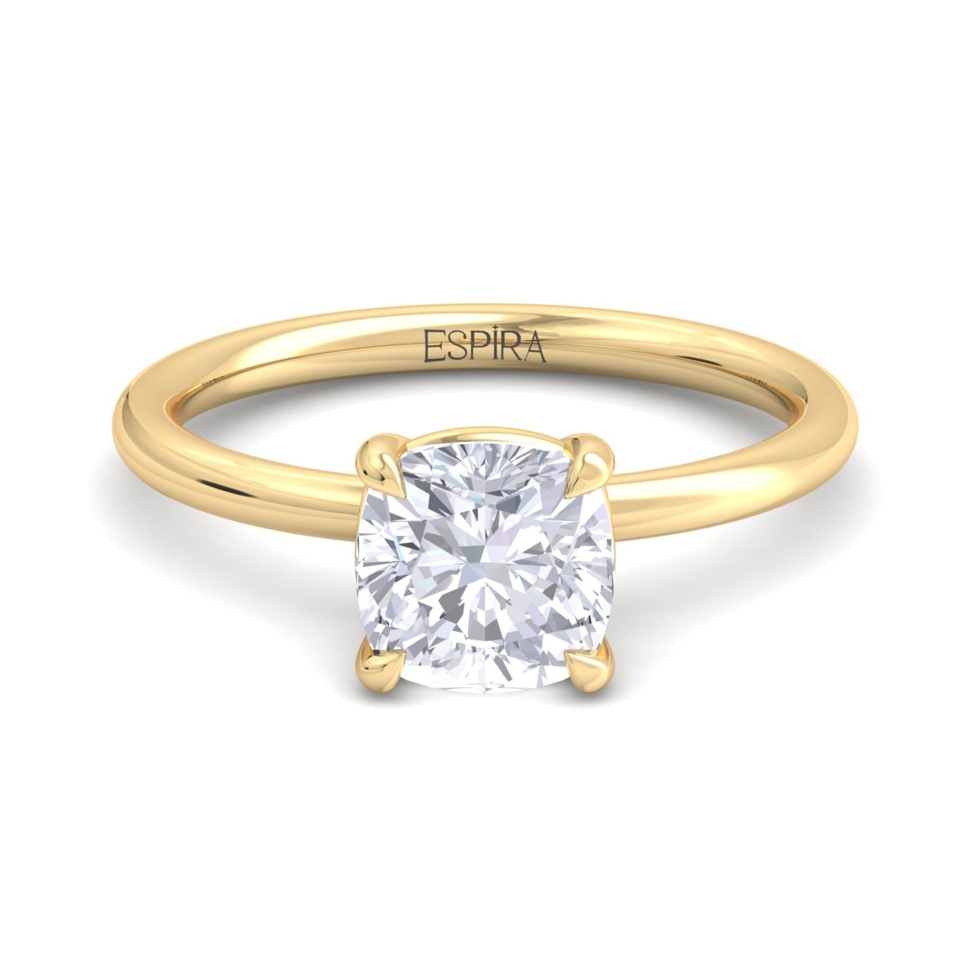 This ring stands out through its harmonious fusion of classic vintage appeal and contemporary sophistication. Cushion cut’s gentle, rounded edges and sparkling facets evoke a timeless, heirloom quality, while the streamlined band maintains a modern, elegant simplicity. The open gallery setting enhances diamond brilliance by allowing light penetration from beneath.