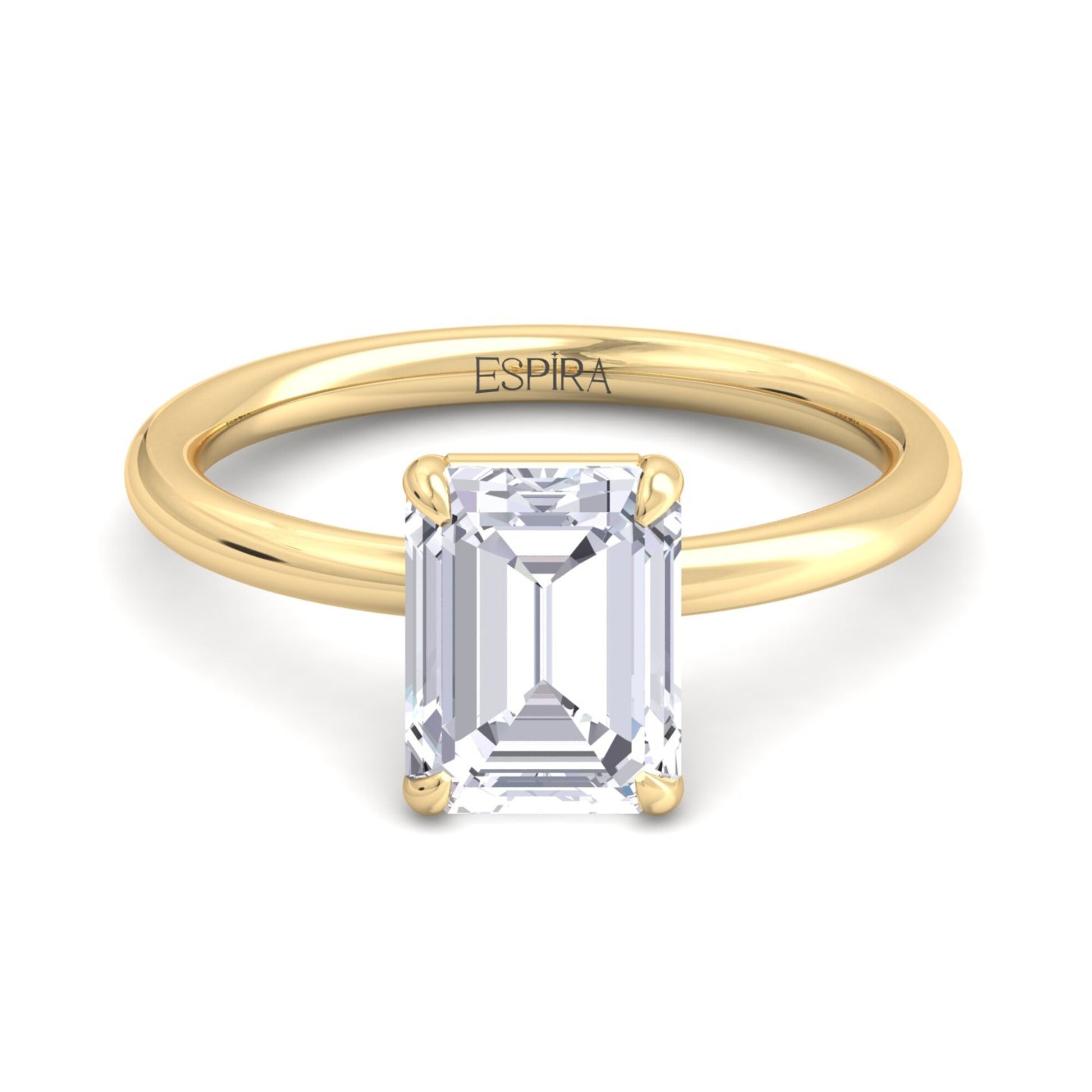 The Liberty 2 Carat Emerald Diamond Ring showcases timeless sophistication through its impressive 2 Carat Emerald-cut lab-grown diamond, elegantly presented in a claw four-prong solitaire setting. Its distinctive step facets deliver unmatched brilliance and sophistication, while the secure prong setting ensures your treasure remains protected.