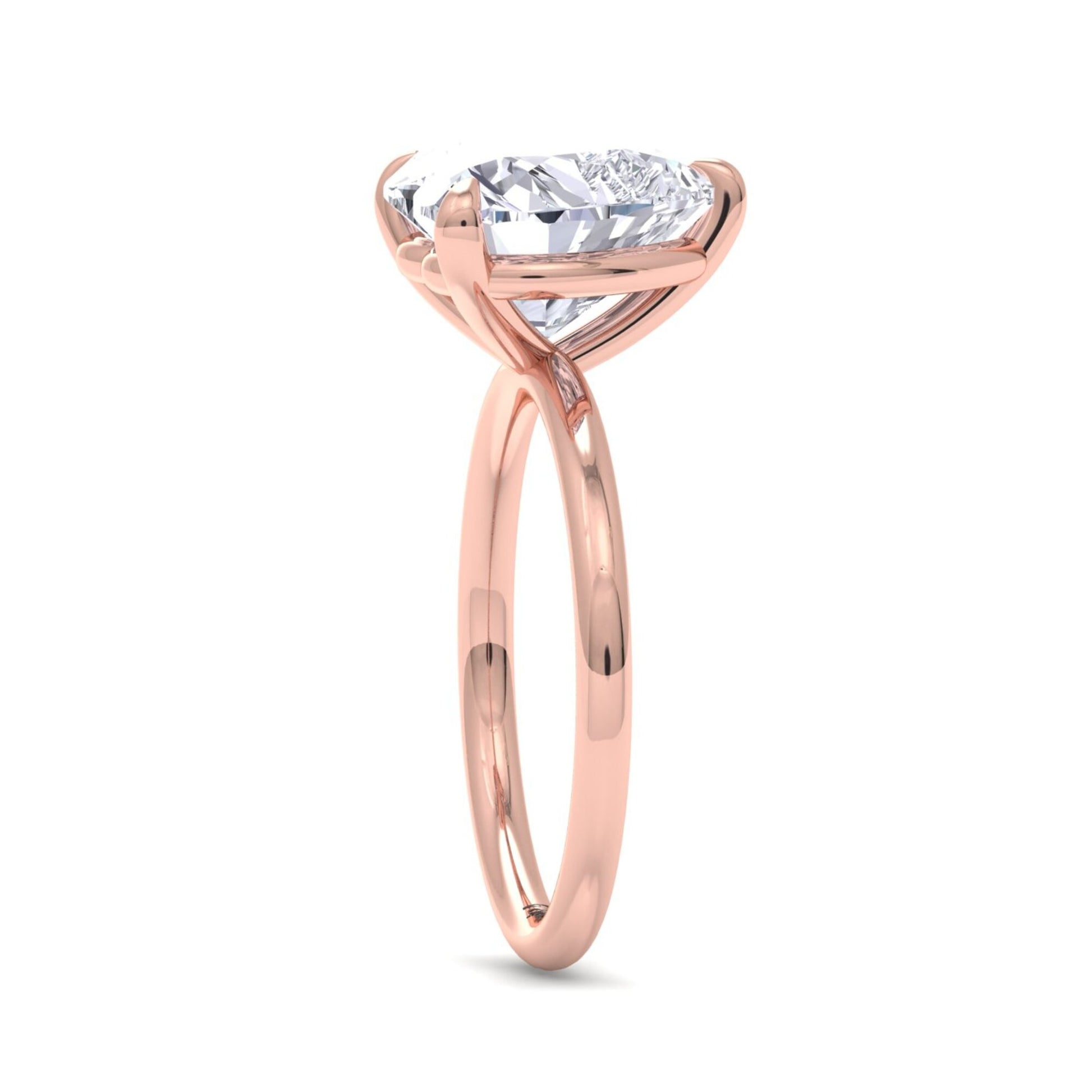 Whether viewed from the front or the side, the stone is held delicately in a secure martini claw prong setting. The elevated setting not only adds visual height but also ensures the diamond captures light from every angle, making it an unforgettable piece from every perspective.